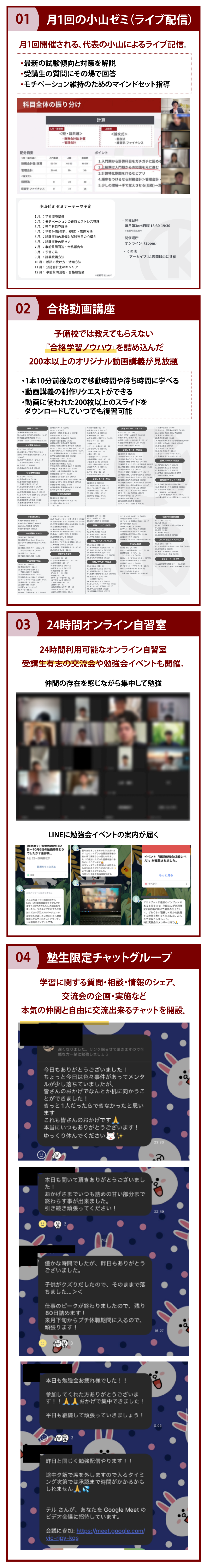 講師である小山、そして同じ志を持つ仲間と共に、チームの力であなたのモチベーションを高く維持し、合格まで伴走し続ける。それが、私たちの提供する『実践コミュニティ』です。